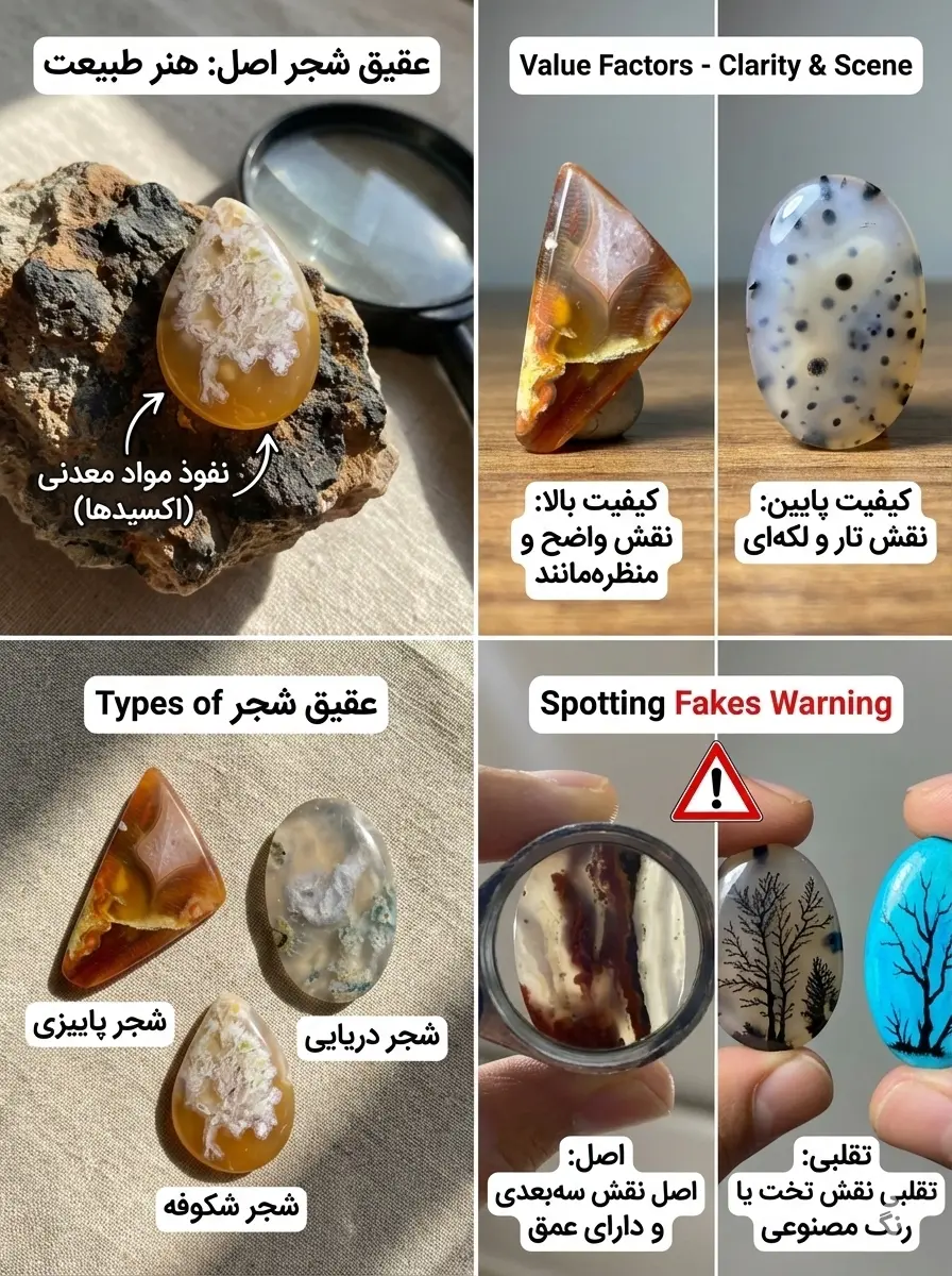 راهنمای جامع خرید عقیق شجر اصل: تشخیص تقلب، قیمت و خواص