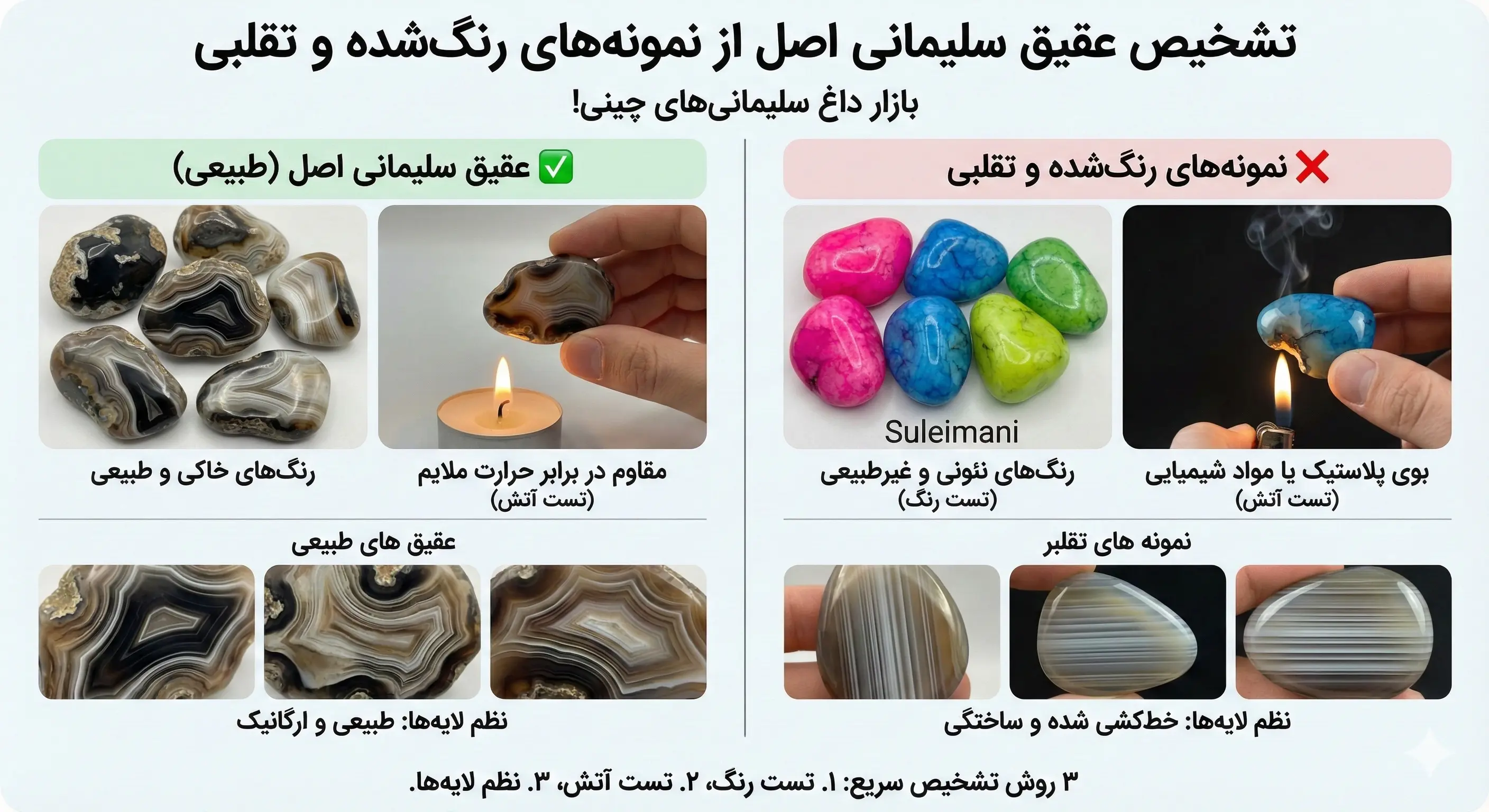 تشخیص عقیق سلیمانی اصل از تقلبی: ۵ روش حرفهای که فروشندگان به شما نمیگویند
