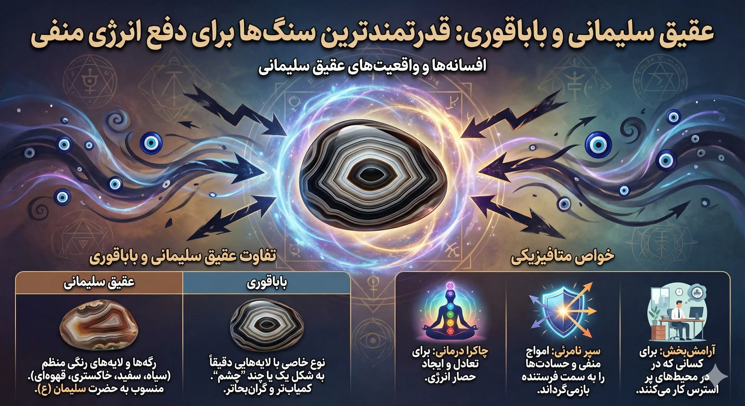 عقیق سلیمانی و باباقوری: قدرتمندترین سنگها برای دفع انرژی منفی | سپر بلای باستانی